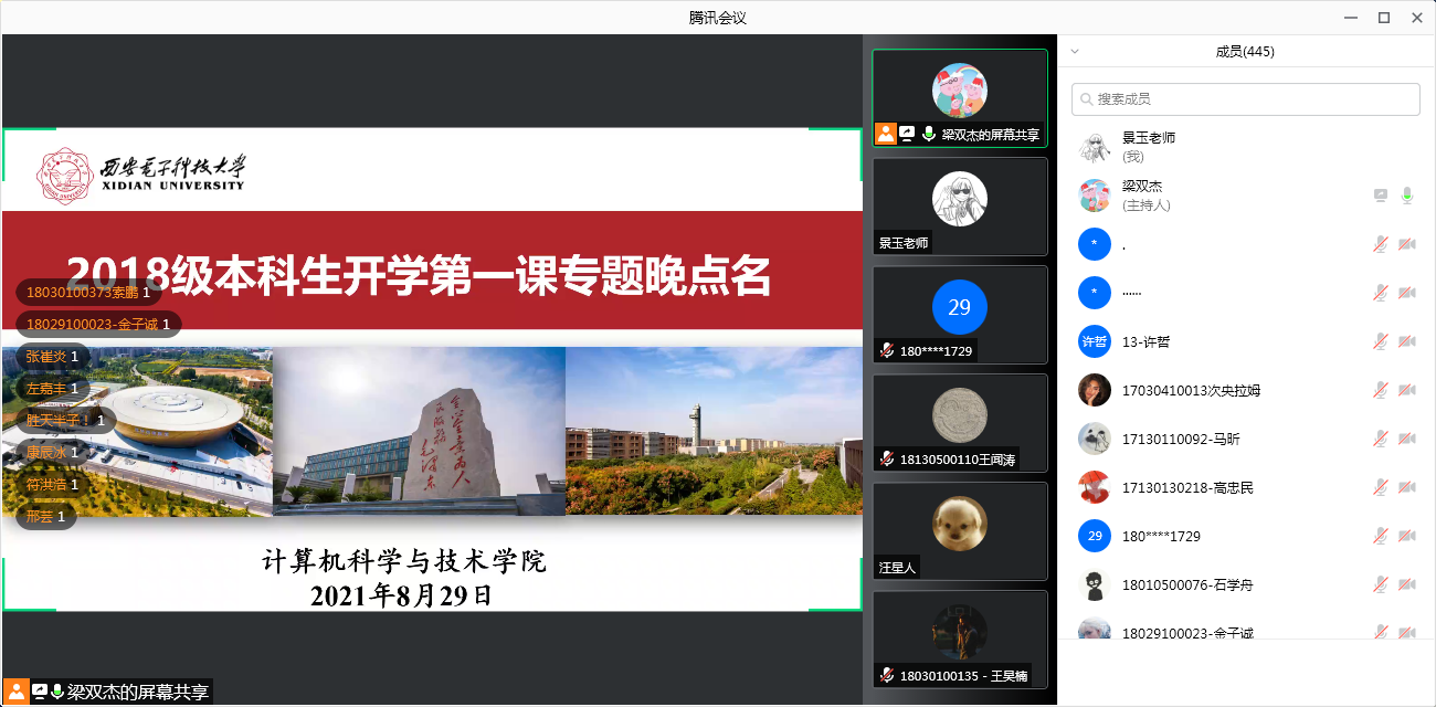 (通讯员 景玉 张力月)2021年8月29日下午,sunbet面向2018级本科生开展了线上“开学第一课”专题晚点名活动。三位本科生辅导员围绕疫情防控、安全教育、升学深造、就业择业等多个方面向同学们介绍了本学期的重点工作任务,引导同学们早知道、早准备、早规划。