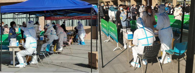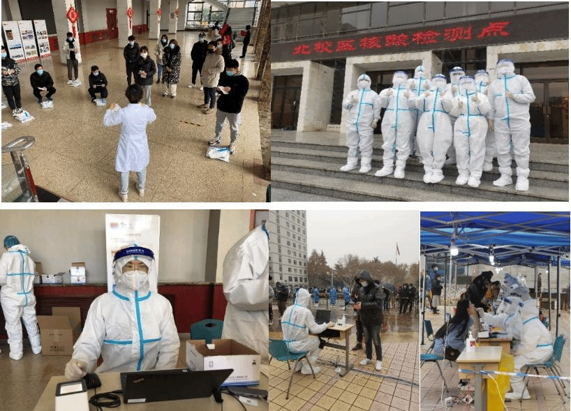 为支援工作人员,高效有序做好北校区教学区全员核酸检测,公司第一时间组建研究生疫情防控志愿者队伍。辅导员一呼百应,短短时间就有169名研究生志愿者报名,其中有党员132人。23日清晨,32名同学穿上防护服,经过培训后变身最可爱的“大白”,在寒冷的室外辅助工作人员进行检测工作。南校区抗疫一线,本科生党员同学也冲在前面。在21日的全员核酸检测工作中,26名志愿者同学穿上防护服协助工作人员,其中党员有24人。因为检测任务较重,第一组志愿者从早上9点多开始工作,不吃不喝坚持战斗到下午3点。同学们却都说“不辛苦,其他人更辛苦”。