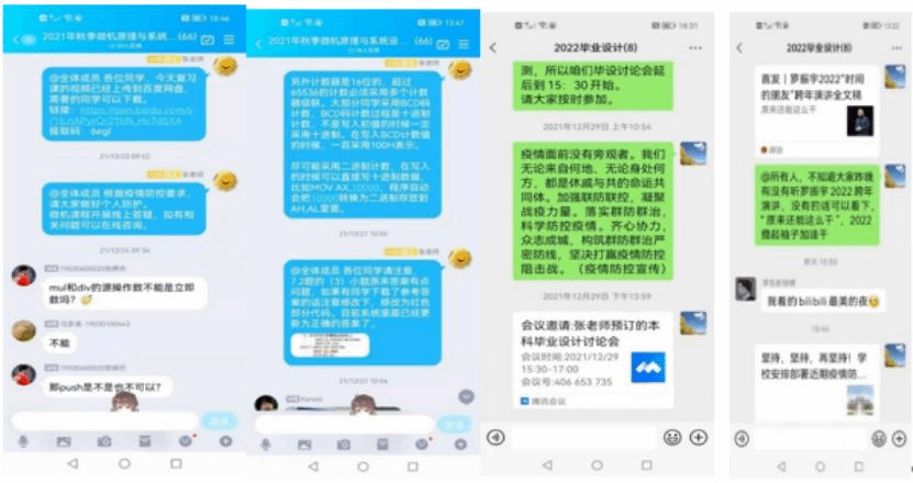 田玉敏、王笛老师结合疫情发展,及时调整了第二学位工程设计中期答辩方式,保证了学习实践进度;程飞、杨鹏飞、赵辉等嵌入式计算技术研究所青年教师在学术带头人王泉教授和团队负责人万波教授的指导下,结合研究生开题需求,组织了硕士开题专场研讨,帮助员工快速掌握报告撰写技巧和找准科研方向;张剑贤老师在完成课程教学内容基础上,积极开展线上答疑,保证了课程教学效果,同时与毕设同学建立线上联系,详细分析了每个毕业设计题目的要求及任务安排,讲述了如何进行文献资料的查找和分析整理,并点评了多篇优秀本科毕设论文。赵辉、王笛、夏小芳等青年老师还积极参与到公司组织的“同心战疫、云上学术”系列活动中,给大家带来了精彩的学术报告,为提升员工科研能力和学术水平贡献力量。