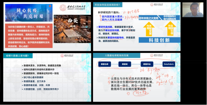 疫情防控就是最好的案例,崔江涛老师结合疫情防控中的大数据应用挑战,进行案例式和问题导向式教学,将《多媒体数据处理》课程中“多媒体数据处理导论”教学内容更新为“大数据管理治理与分析挖掘的挑战-从疫情防控谈起”,通过让员工思考“科技如何促进高效防疫”中的数据管理问题,认识到疫情大数据多源异构性和数据孤岛现象,造成疫情数据的集成难、关联难、流通难等问题、并探讨可行的解决方案。从疫情大数据的挑战出发,着重介绍了数据库和大数据技术的发展历史,最后让员工思考如何将这些技术的最新进展应用到疫情防控上来。