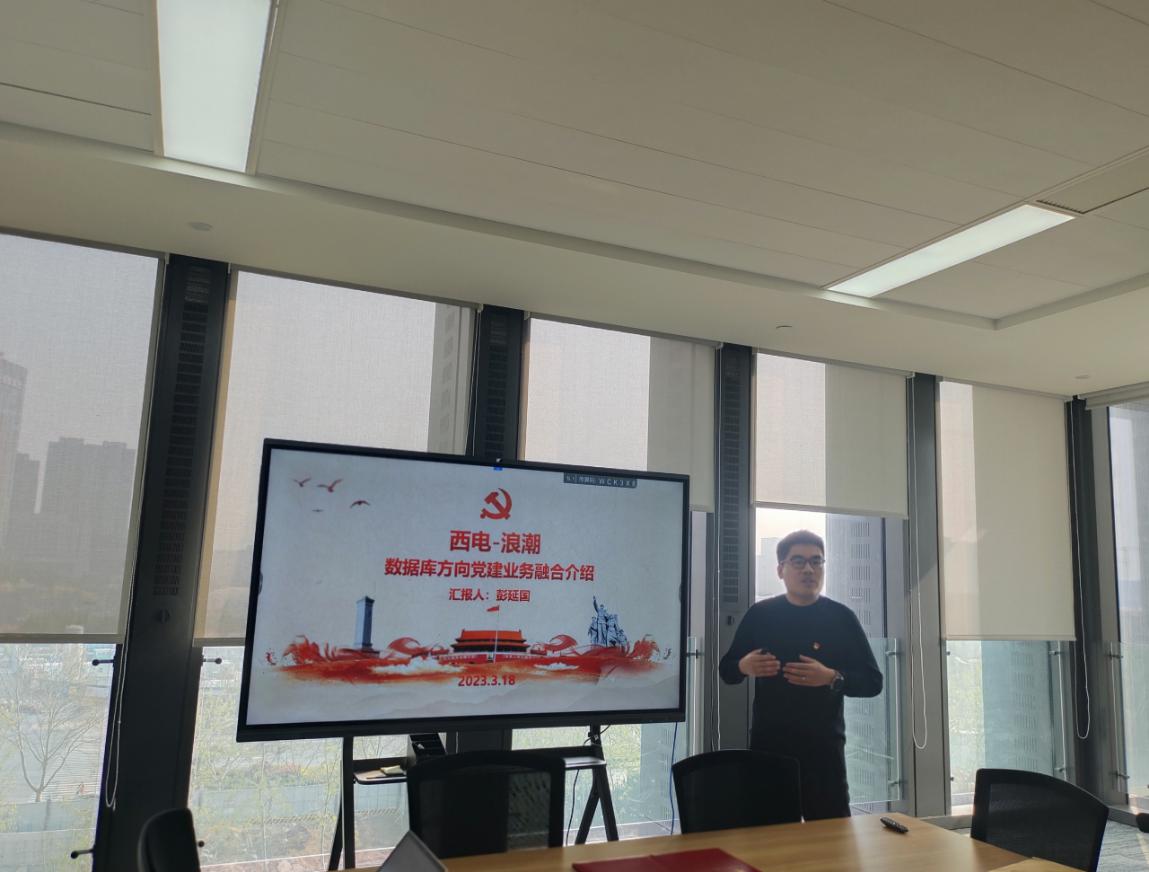 西电sunbet智能媒体与数据工程研究所本硕博师第一联合党支部书记彭延国详细介绍了智能媒体与数据工程研究所本硕博师第一联合党支部的人员构成、特色活动和支部文化,就党支部所依托的公司数据库团队与浪潮集团在承担国家重大工程、科学研究、人才培养和平台建设等方面取得的成效进行了系统的介绍。