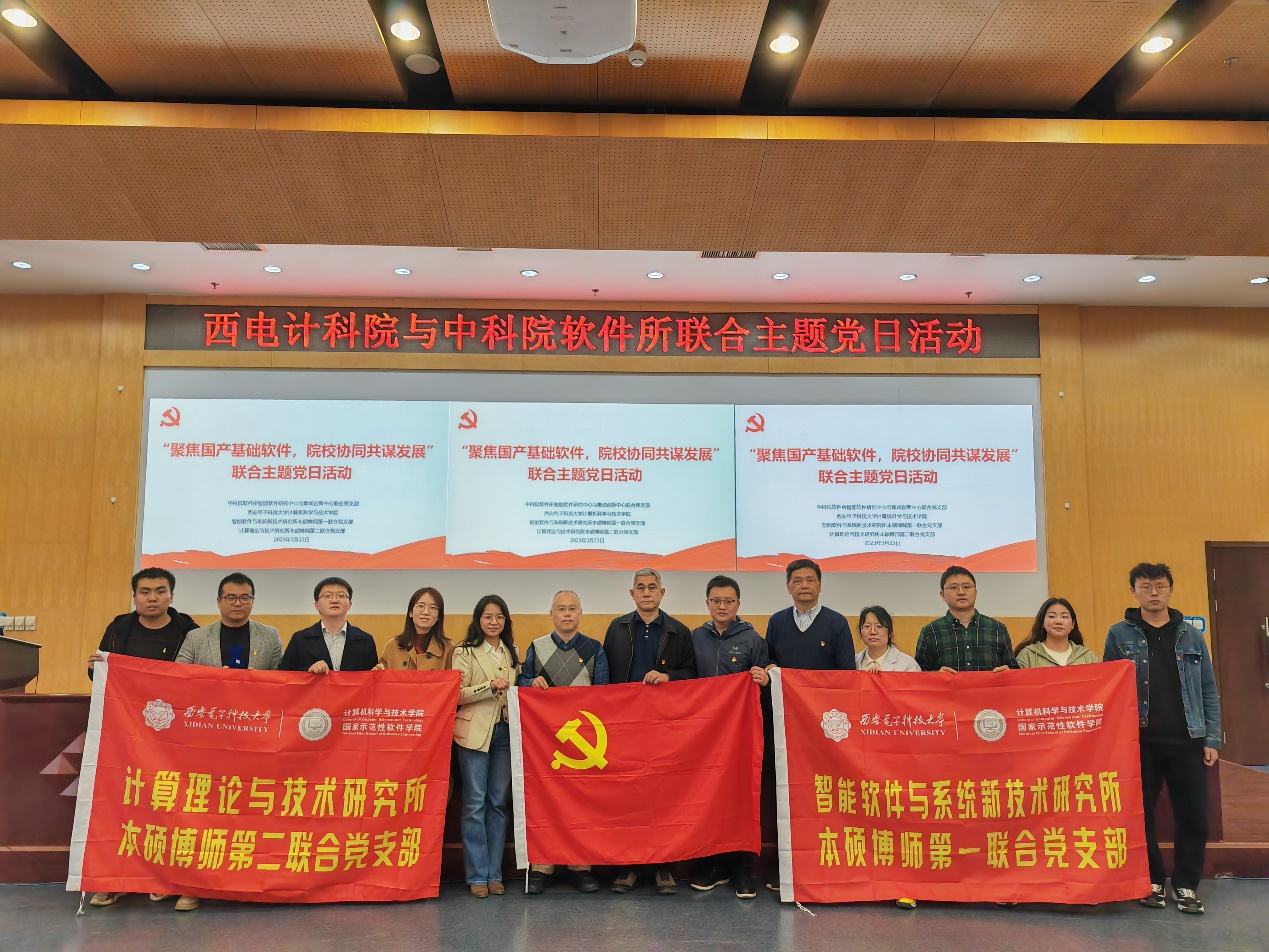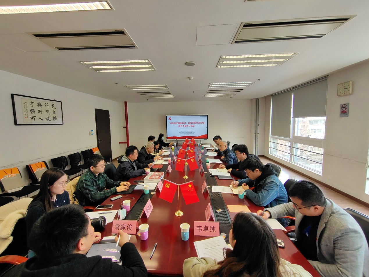 (通讯员 同榛)为学习贯彻党的二十大精神,响应习近平总书记“强化国家战略科技力量,提升国家创新体系整体效能”的号召,加强重大科学问题研究,加大共性科学技术破解,加深重点战略科学项目协作,3月23日下午,由计算机科学与技术公司党委书记李青山带队,正处级组织员张卫东、智能软件与系统新技术研究所本硕博师第一联合党支部书记王璐、计算理论与技术研究所本硕博师第二联合党支部书记于斌及员工党员代表等一行9人赴北京与中科院软件所智能软件研究中心与集成创新中心联合党支部联合开展“校企携手共建,弘扬科技创新”主题党日活动,旨在发挥党建引领作用,推进党建与业务深度融合,为实现国产软件自主可控展开全方位的深度合作,提升人才培养质量,充分发挥双方优势实现共赢。中科院软件所党委副书记、纪委书记李衡,纪委副书记、纪检监督室副主任(主持工作)黄克翠,中科院软件所智能软件研究中心与集成创新中心联合党支部书记吴敬征以及支部党员代表参加了活动。