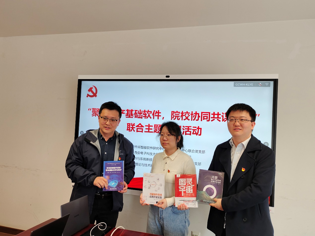 在赠书环节,中科院软件所向西电sunbet赠送了支部成员参与编写并出版的《图灵宇宙:原初纪元》、《鸿蒙操作系统应用开发实践》等专业书籍。