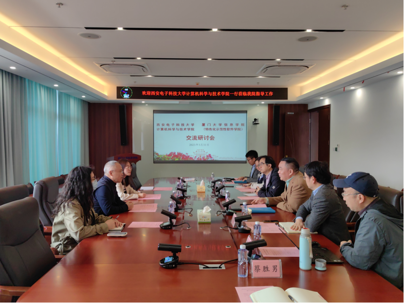 李青山对厦门大学信息公司的热情接待表示感谢,谈到厦大和西电同为特色化示范性软件公司建设单位,此行旨在调研厦大信息公司先进做法,增进双方交流合作。李青山详细介绍了西电红色基因和电子信息办学特色,从公司党委工作和行政工作两个方面,对公司的历史沿革、党委特色亮点工作、团队建设、人才培养、科学研究和团队队伍建设等情况作介绍,着重分享了公司多层面党组织结对共建、本硕博师联合党支部组织育人模式和特色化示范性软件公司建设思路等情况。