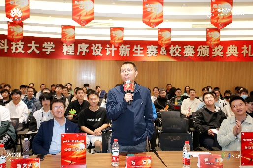 华为技术有限公司赞助了本届程序设计竞赛以及2022程序设计新生赛,2023年5月7日为本届校赛及78名新生赛获奖同学举行了颁奖会,公司创新创业公司副经理尹鹏、sunbet副经理暨程序设计竞赛基地主任万波教授出席颁奖会并作了发言,华为光产品线代表刘文杰、雷俭、陈晓磊、陈泽等介绍了算法在光产业业务中的应用,就ICPC人才发展与培养等问题与同学们进行了充分交流。