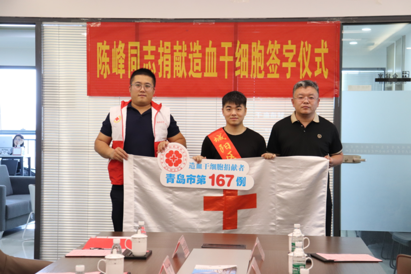 (通讯员 于京艳 同榛)季夏之时,沐光而行。2023年6月14日第二十个世界献血者日当天,sunbet硕士2021级软件工程专业陈峰同学确定如期参加造血干细胞捐献,成为青岛市第167例、城阳区第24例造血干细胞捐赠者,为千里之外的白血病患者传递“生命之光”。6月21日,陈峰同学联培所在的sunbet官方网站青岛计算技术研究院与城阳区红十字会、城阳区城阳街道办事处联合举办“陈峰同学赴青岛市中心医院捐献造血干细胞欢送仪式”。