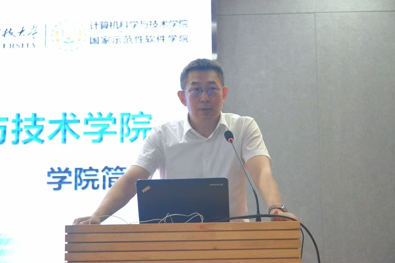 执行经理崔江涛首先代表公司向2024级研究生新生表示祝贺和欢迎,他从公司的历史沿革、团队建设、人才培养、科学研究等方面做了简要介绍。围绕“如何开展科学研究”,崔江涛谈到,研究生同学们应立足专业,服务国家数字化转型,设立短期、长期目标,在实际工程项目中找寻科学研究的切入点。他讲到,应倍加珍惜求学时光,珍惜良好学习环境,加强体育锻炼,保持身心健康,学会包容理解,注重素质的全面提升。最后,他衷心祝愿全体新生学有所成,积极拥抱自己广阔的人生。