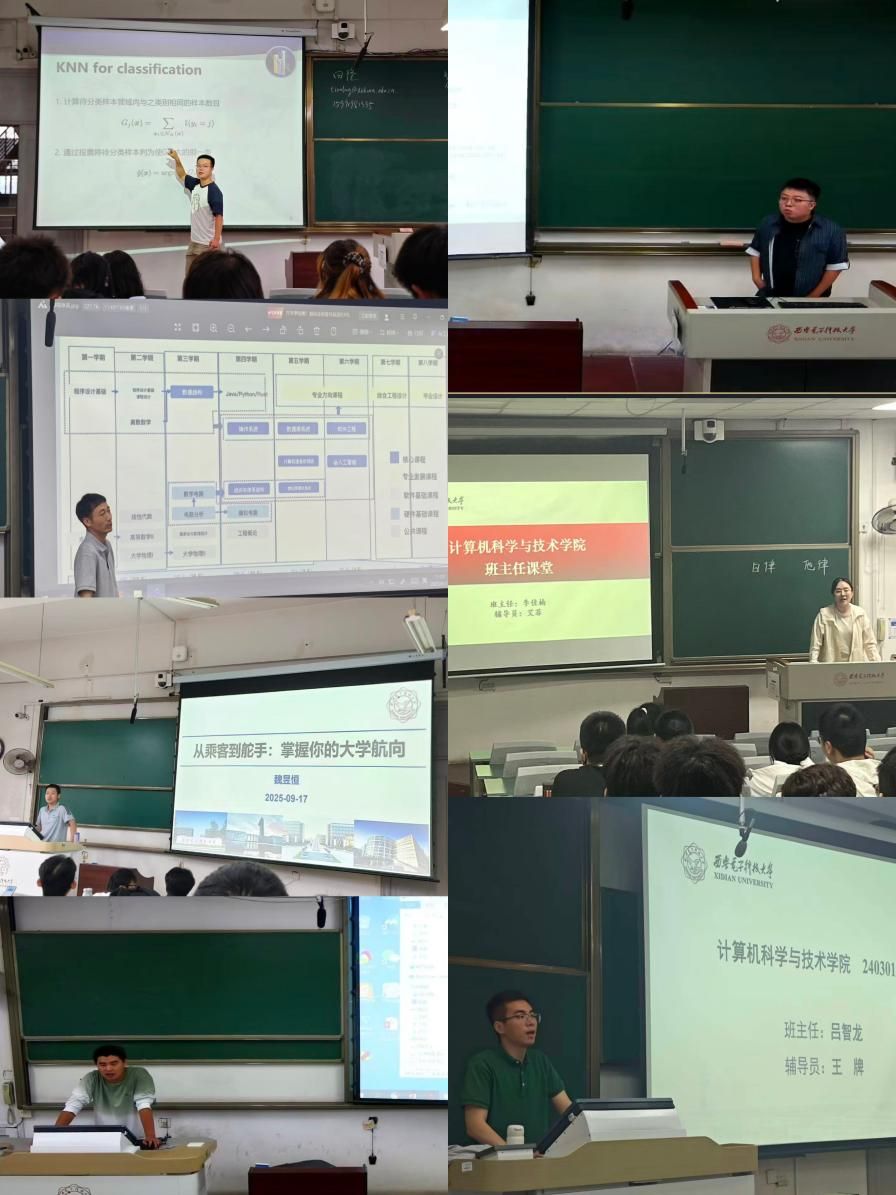 课程上半场由班主任主讲。各位班主任老师精心准备,围绕“专业培养计划与课程体系架构”这一核心主题,为同学们进行了系统而深入的解读。老师们从计算机学科的发展前沿与行业趋势切入,详细介绍了本专业的培养目标、毕业要求、核心课程设置、实践教学环节以及未来的专业分流方向等。通过梳理从大一基础课到大四毕业设计的整体课程地图,帮助同学们构建起对大学四年专业知识体系的宏观认知,明确了各阶段的学习重点与任务,为接下来的专业学习奠定了坚实的认知基础。