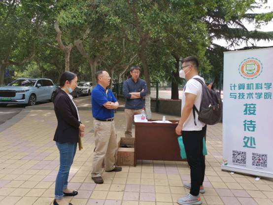 李青山、崔江涛在公司研究生返校接待点与员工交流