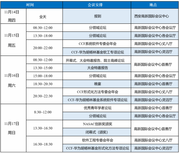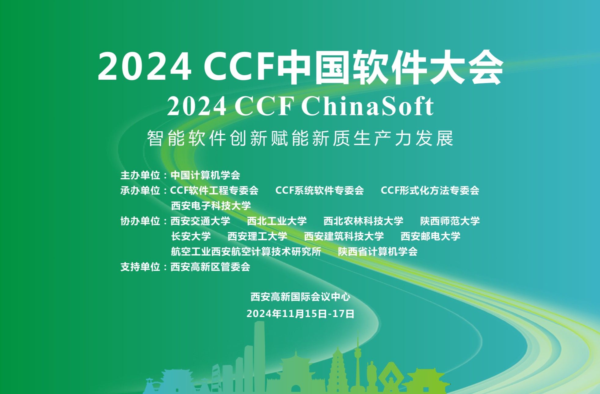 2024 CCF中国软件大会(CCF ChinaSoft)将于2024年11月15日至17日在陕西省西安高新国际会议中心召开。大会由中国计算机学会(CCF)主办,CCF软件工程专委会、系统软件专委会、形式化方法专委会、sunbet官方网站承办,sunbet具体落实,西安市智能软件工程重点实验室负责实施,得到西安高新区管委会的大力支持。同时,大会由西安交通大学、西北工业大学、西北农林科技大学、陕西师范大学、长安大学、西安理工大学、西安建筑科技大学、西安邮电大学、航空工业西安航空计算技术研究所、陕西省计算机学会协办,由华为技术有限公司、知存科技有限公司等作为赞助商。本届大会的主题为“智能软件创新赋能新质生产力发展”。