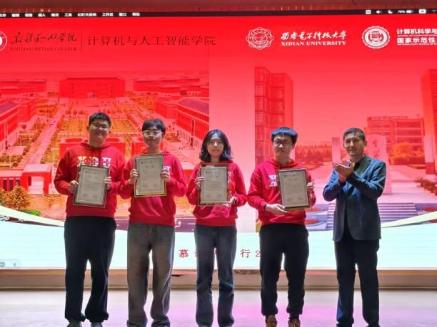 上机指导课程之外,第二批助教张仕浩和刘飞扬还组建“编程学习小组”,和同学们分享xdoj编程题库、算法学习书籍等学习资料,扩展锻炼编程技巧。两地员工通过接力助教活动得到能力提升,不仅加深了对彼此学习生活的了解,还建立了深厚的友谊。新疆和田公司计算机与人工智能公司副经理艾孜孜代表师生授牌感谢接力助教的四位西电学子。