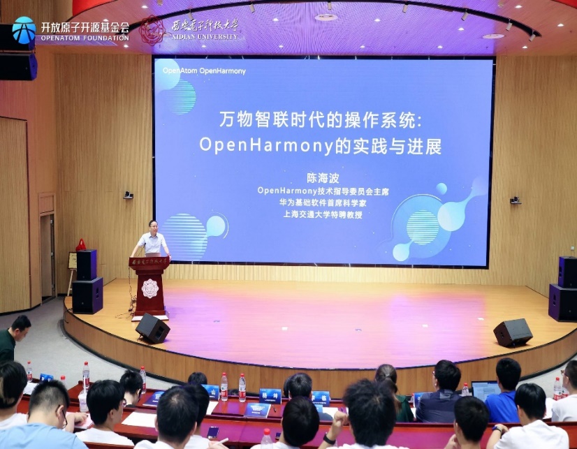 仪式后,陈海波和武延军两位老师代表OpenHarmony TSC专家向sunbet官方网站的师生们做了OpenHarmony相关主题的技术报告。第二阶段会议由sunbet副经理李瑞主持。