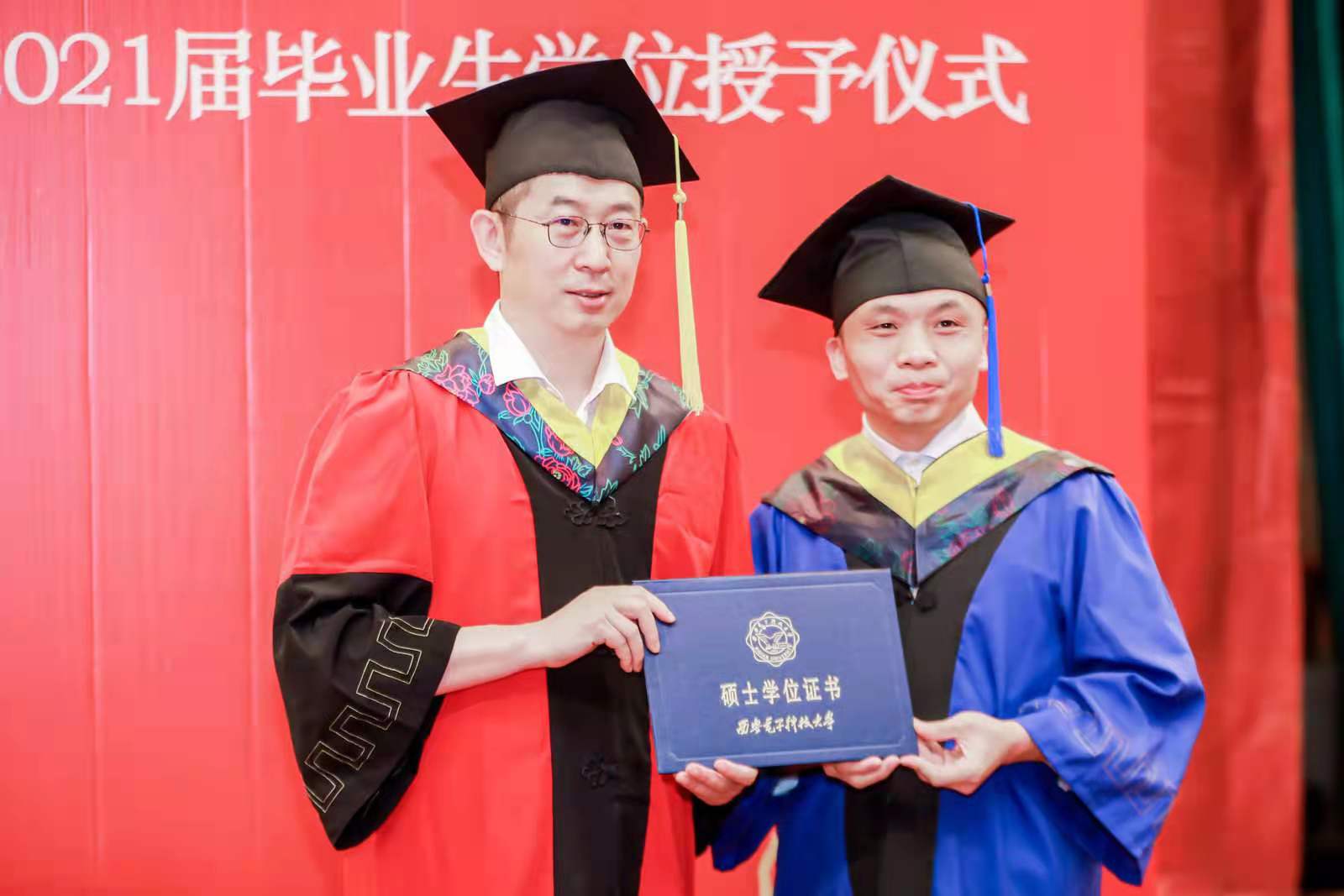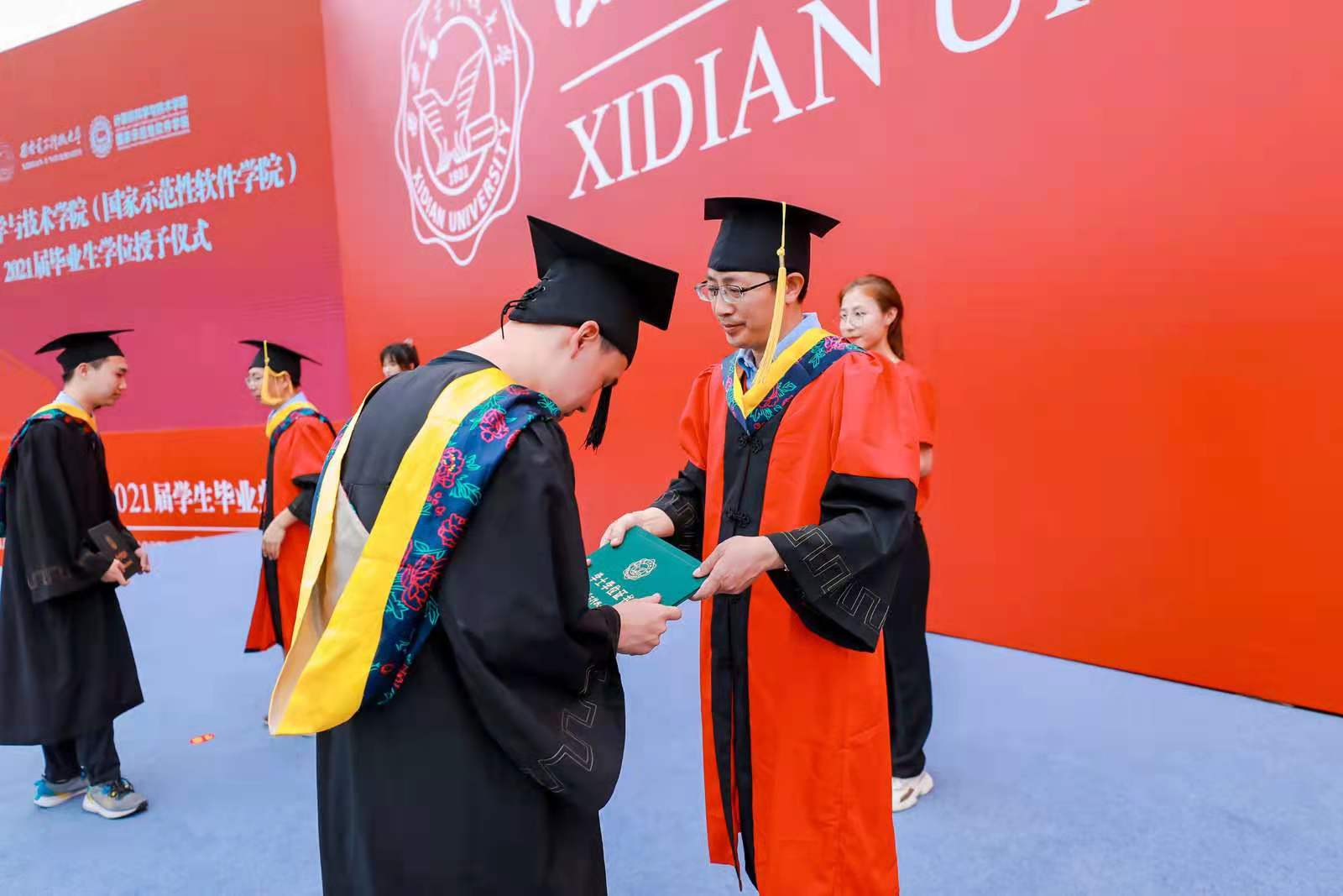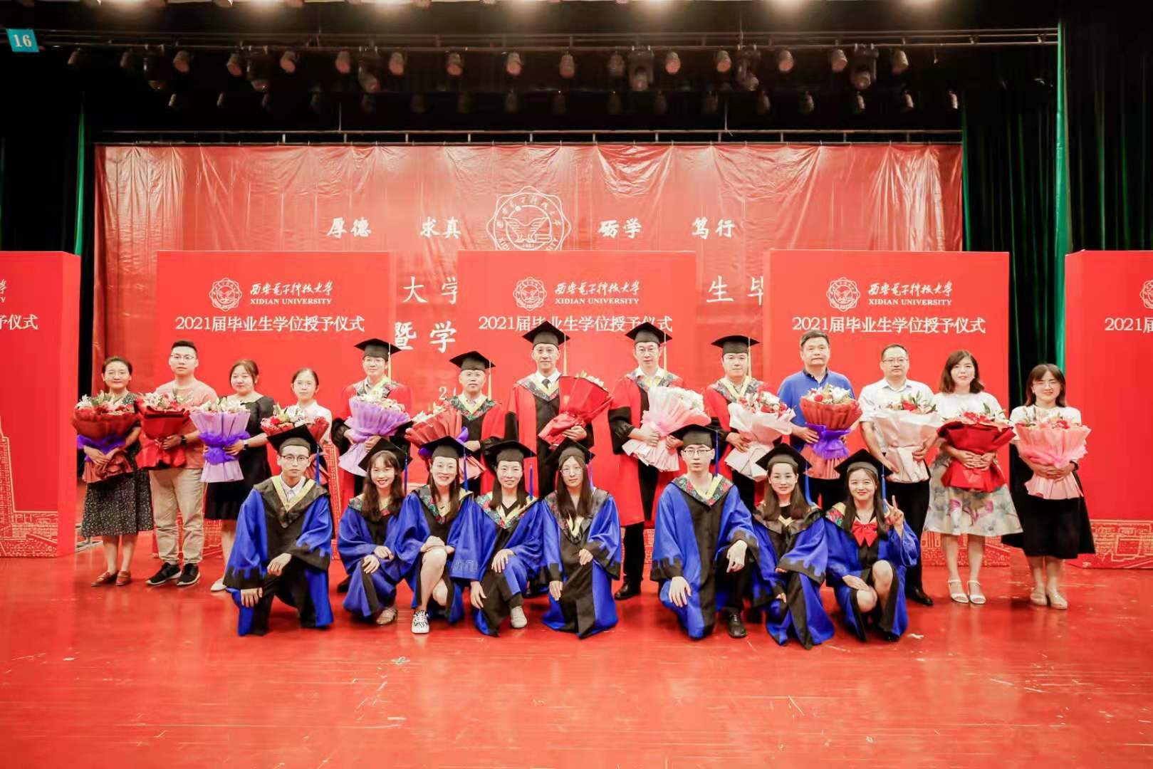 仪式最后,毕业生代表上台向领导、教师代表和辅导员献上美丽的鲜花,表达崇高的敬意。师生纷纷合影,记录这珍贵的一刻。2021届毕业生学位授予仪式在深深祝福和依依不舍中圆满落下帷幕。