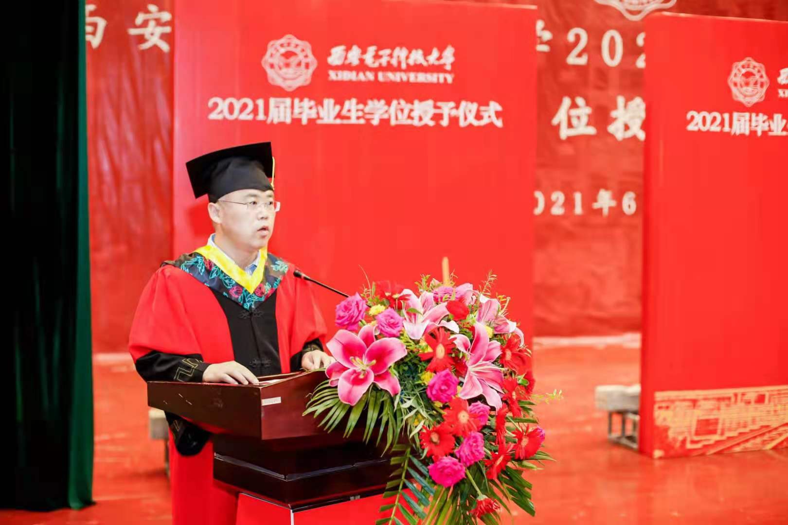 公司副经理万波教授宣读公司授位决定,2021届共937名本科毕业生,包括2名来华职工,获得学士学位。