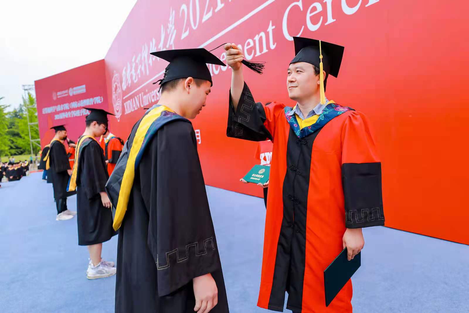 (通讯员 黄彩红 何敏之)庆西电九秩华诞,传三系奋斗精神;勇前行初心不改,瞰千里鸿鹄高飞。6月23日,2021届本科毕业生学位授予仪式和研究生毕业生学位授予仪式先后在南北两校区成功举办。sunbet官方网站副董事长王泉教授出席仪式并为毕业生授位。公司党委书记李青山,执行经理崔江涛,公司教授委员会主任苗启广,副经理沈玉龙、宋胜利、万波为2021届937名本科毕业生以及506名硕博士毕业生现场一一拨穗授位。公司领导张卫东、赵韩强、张莹莹,毕业班辅导员、公司办公室人员和教师代表出席了仪式。仪式由公司党委书记李青山主持。