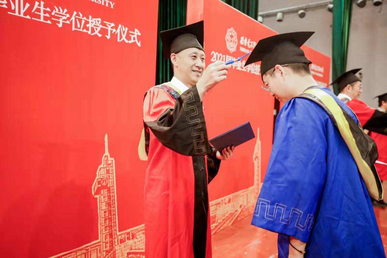 伴随着激扬、欢快的背景音乐,毕业生们排着整齐的队列,依次上台,授位嘉宾一一为同学们拨穗、授位。与会领导老师、全体毕业生和部分员工家长共同见证了这一激动人心的时刻。