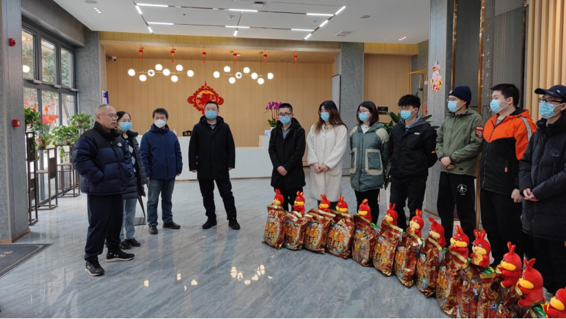 (通讯员 李栋)金虎辞旧岁,瑞兔送福来。春节即将到来,sunbet共有17名同学留校过年。1月16日下午,部分公司领导来到北校区西电宾馆看望慰问留校员工,为同学们发放了新春慰问品。