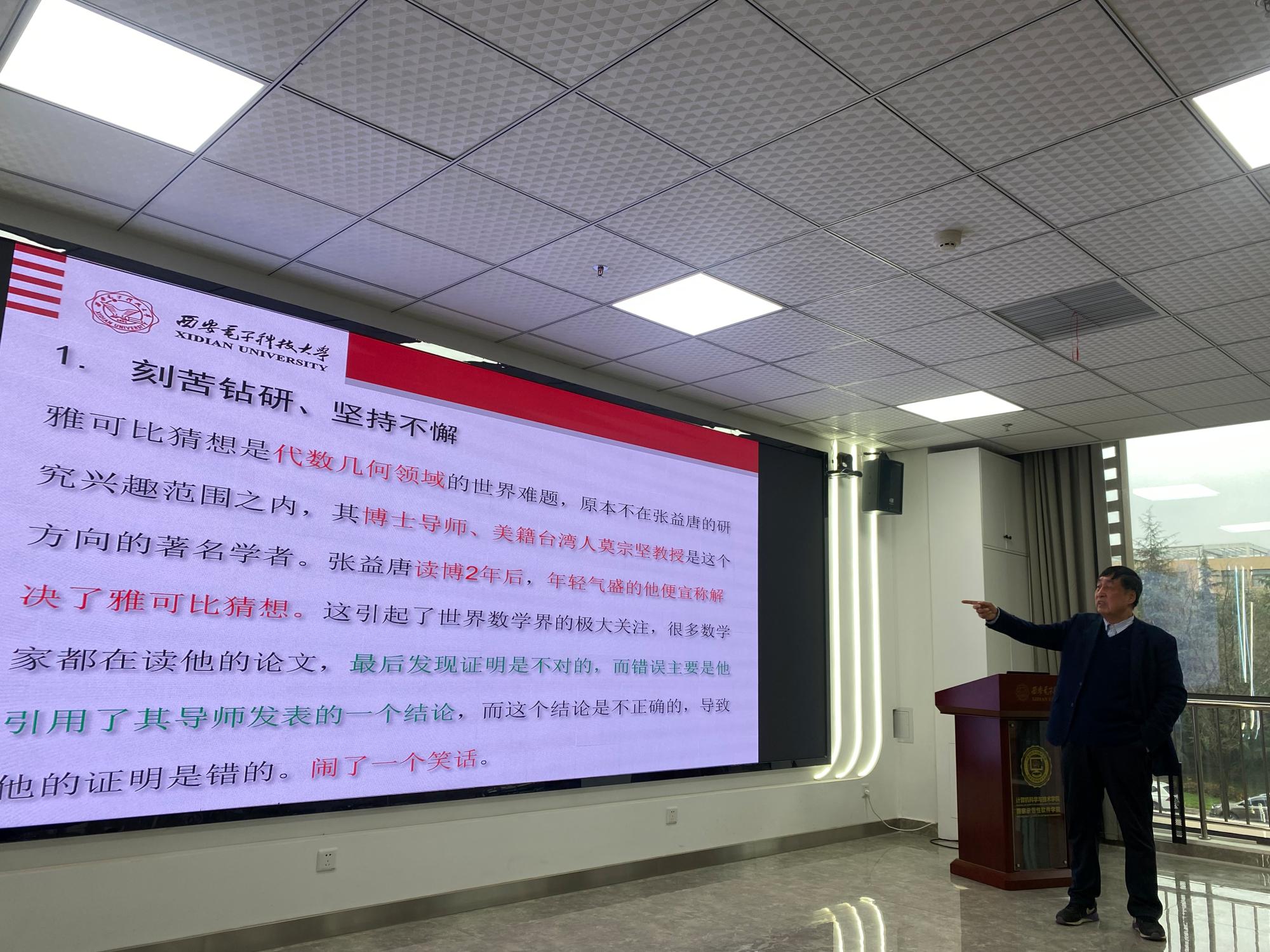 王宇平教授围绕“如何开始科研、如何进行科研、如何发扬科学精神、建立学术诚信和坚守学术规范”等三个层面进行了深入阐述。他讲到:“从1993年取得博士学位以来,我在科研道路上已坚持30余年。做科学研究,最重要的无非两点:一是要有“甘作冷板凳”的精神,能持之以恒、日复一日,回顾学术领域,多少伟大的成就都不是一蹴而就,是靠十年磨一剑的深功夫取得的。二是要能吃苦、肯奋斗,在学术研究中,不怕吃苦,乐于吃苦,才能有所突破”。他鼓励同学们在实践中发扬“科学家精神”,坚守科研诚信、科技伦理、学术规范,担当作为、求实创新、潜心研究,在实现高水平科技自立自强和建设科技强国、人才强国实践中建功立业,在以中国式现代化全面推进中华民族伟大复兴进程中奉献青春和智慧。
