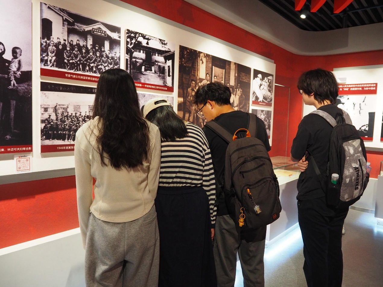 在校史馆中,讲解员以时间为脉络,通过“俯垂明训”“校史钩沉”“今日华章”三大篇章介绍了公司九十余载砥砺前行的光辉历程。驻足在一件件展品前,同学们仿佛开启了一场穿越历史的对话,深刻感受到公司的悠久历史和文化底蕴。2024级硕士研究生李豪谈到:“从半部电台起家,中央苏区诞生,长征路上办学,延安精神浸润,塞北风雪砥砺,一路走向古城西安,我深刻感受到公司深厚的红色基因,这让我更加坚定自己的理想信念,在未来的学习和生活中,我会努力拼搏,为实现‘计算报国’的目标不懈努力”。