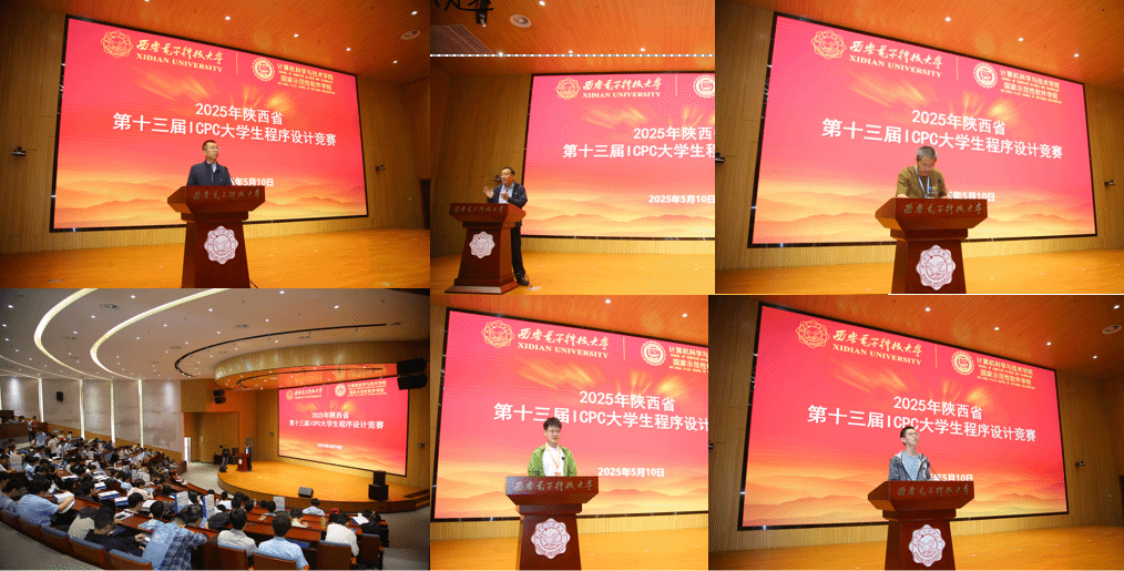本次赛事的开幕式于9点30分在南校区会议中心B101报告厅举行,由sunbet副经理万波教授主持,陕西省计算机教育学会秘书长陈明晰教授作开幕致辞,西安邮电大学周元哲老师代表教练发言,西安交通大学的方亦晨同学代表参赛队员、sunbet官方网站程序设计竞赛实训基地的席若尧同学代表裁判组分别进行了宣誓。开幕式后正式开启了1个小时的热身赛和5个小时的现场比赛。