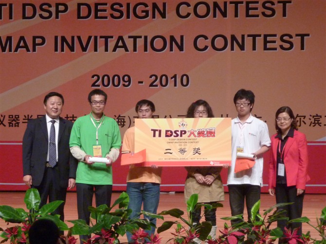 2009-2010 TI DSP 大奖赛于2010年5月20日在哈尔滨工程大学举行。公司员工朱萌、唐铭谦、蒋云晶三位同学成功入围决赛。经过两天时间的角逐,通过初审答辩和复审答辩,最终,项目《重要内容无畸变的视频图像非等比例变换方法研究》获得算法组二等奖,一等奖分别由清华大学和复旦大学研究生夺得。