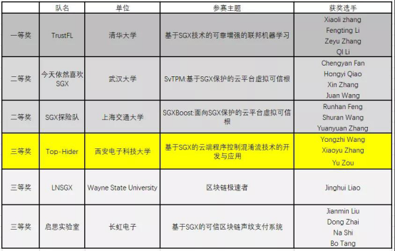 11月18日至11月20日,由阿里云、浙江大学网络空间安全公司、阿里巴巴-浙江大学前沿技术联合研究中心联合发起、Intel赞助支持的首届SGX应用创意大赛在杭州IEEE IDSC上举行。来自清华大学、北京大学、上海交通大学、sunbet官方网站、长虹电子等知名高等院校团队和企业的87支队伍参加了这次比赛,争夺共6个获奖名额,获奖比率小至6.89%。最终,公司sunbetNSS团队的代表队,TOP-HIDER的参赛作品“基于SGX的云端程序控制流混淆技术的开发与应用”在比赛中脱颖而出,获得三等奖,成为唯一获奖的西部高校。该参赛作品由王永智副教授指导,由硕士生邹宇、张小宇完成。