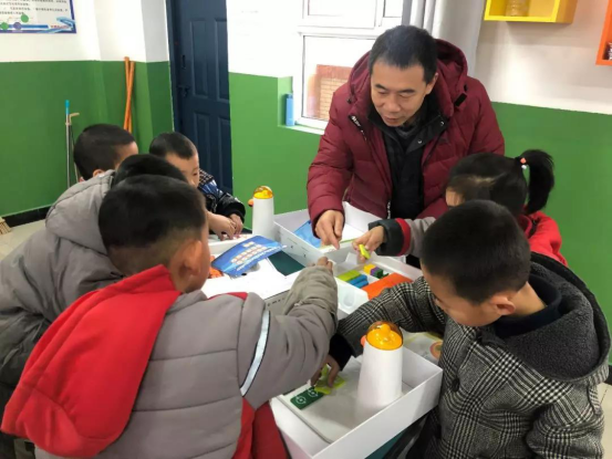 志愿者给小员工讲授MATA机器人编程课程