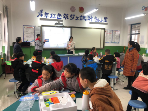 上午10点,蒲城县兴镇中心小学科创小屋科技兴趣培养课再次开讲。在sunbet团委老师及蓝精灵志愿者同学们的指导下,小学低年级小员工们首次接触MATA机器人和3D打印笔。同学们通过对机器人进行简单编程使其完成音乐播放和按指令运动的功能。当机器人播放出悦耳的旋律以及按照规划路线绘制出相应图案时,小员工们不由自主的发出阵阵赞叹。小员工们还学习了如何使用3D打印笔。看到自己画出来的房子、火箭、自行车等图案可以直接变成实物时,小员工们纷纷感叹“这个3D打印笔也太神奇啦”。课间公司师生与小员工们积极互动,课堂气氛活跃高涨。