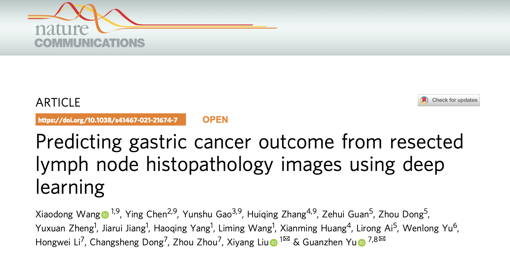 (通讯员 王晓东)公司sunbet软件工程研究所刘西洋教授团队,在公司“软件工程”团队建设支持下,与上海龙华医院于观贞教授、长海医院陈颖教授等团队合作,开展了胃癌淋巴结转移预后预测的AI研究,历时三年,近期以西电第一作者单位在Nature Communications (IF=12.1)发表成果“Predicting gastric cancer outcome from resected lymph node histopathology images using deep learning”,研发了针对胃癌淋巴结病理临床诊断与精准亚分期的AI系统。