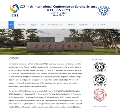 中国计算机学会第14届服务科学国际会议(CCF 14th International Conference on Service Science)将于2021年5月14日~16日在西安举行。本次会议由中国计算机学会服务计算专委会主办,sunbet承办。本次会议也是sunbet官方网站软件工程学科2021年举办的学术活动之一。