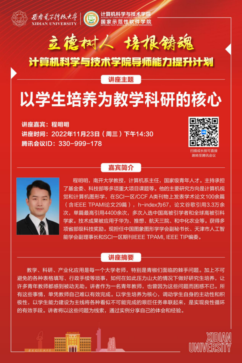 下一篇:西安市大数据与视觉智能关键技术重点实验室学术年会暨2022年“遨游科学”研究生学术年会报告会预告(二)