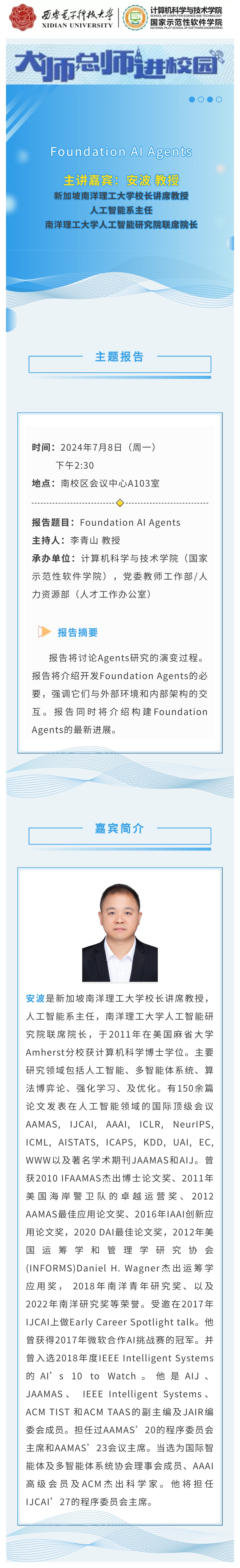 活动预告|安波:Foundation AI Agents