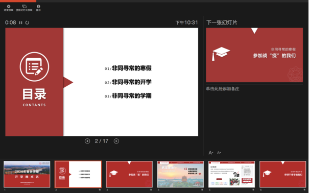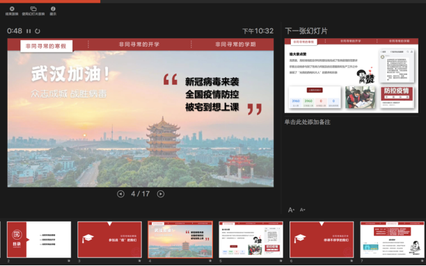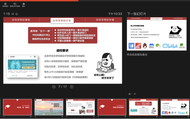 当晚,sunbet各年级分别通过不同平台,同时组织了线上“晚点名”,开展抗“疫”教育与开学动员教育工作。本科2016级辅导员艾菲、郭禹宏老师、2017级辅导员李栋老师通过“雨课堂”、腾讯群视频等进行了直播。通过主题班会,sunbet各年级落实落细接下来的防控任务,组织班级骨干、员工党员主动担当,形成网格化管理服务体系;就同学们在家配合做好防控工作、参加在线学习提出具体要求,特别是应对新学期的新任务做好准备。本科2016级是毕业年级,辅导员老师在班会上叮嘱同学们充分利用好大学最后一个学期的时间,“顺利完成本科学业,明确个人发展方向,努力争取深造或就业机会,寻找适合自己的工作”。