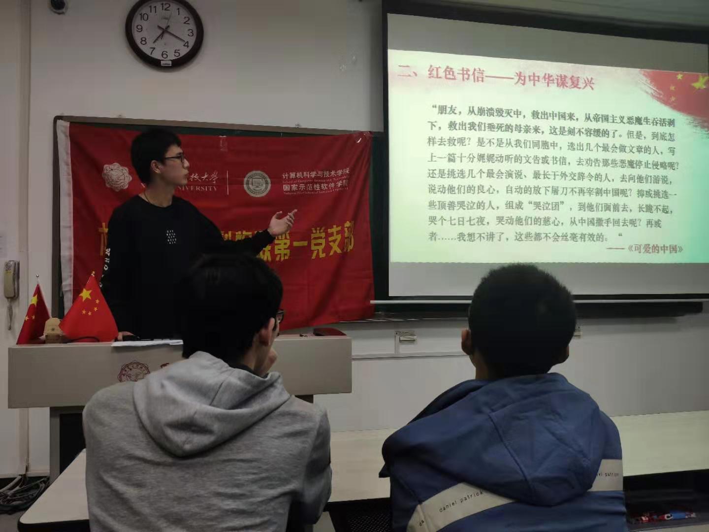 (通讯员 翟恋 徐聪)为感受共产党创业的筚路蓝缕,品鉴从风雨飘摇时代到现在的社会变迁,2019年11月3日晚,​sunbet本科2016级计科物联第一党支部在C楼324教室开展了“红色文化读物交流”主题党日活动,2016级辅导员郭禹宏老师及20余名支部成员参加了活动。