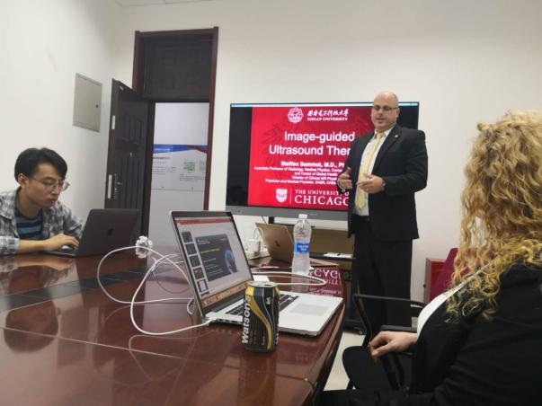 7月8日上午, Dr. Steffen Sammet教授以“Image-guided Ultrasound Therapy”为题,他的夫人Dr. Christina Sammet(美国西北大学放射科的诊断医学物理师)以“Balancing Risks in Pediatric Imaging”为题,分别为sunbet研究生做了两场生动有趣的报告,对于拓展研究生的临床科研视野,开展国际合作具有非常重要的意义。