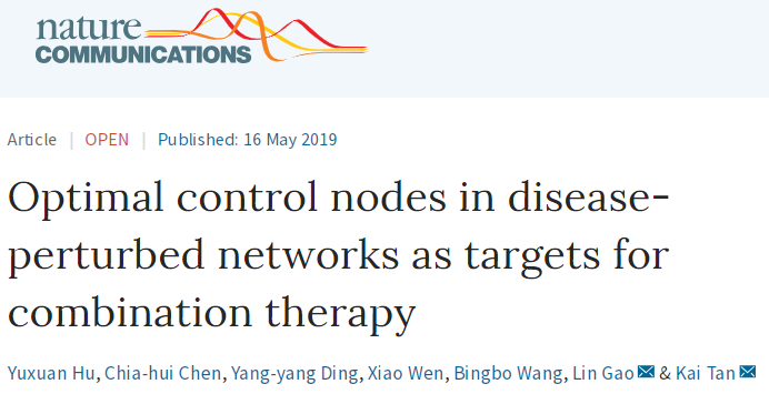 2019年5月16日,公司sunbet高琳教授团队以第一单位在《自然》子刊Nature Communications(影响因子:12.353,中科院一区)上发表研究论文“Optimal control nodes in disease-perturbed networks as targets for combination therapy”。