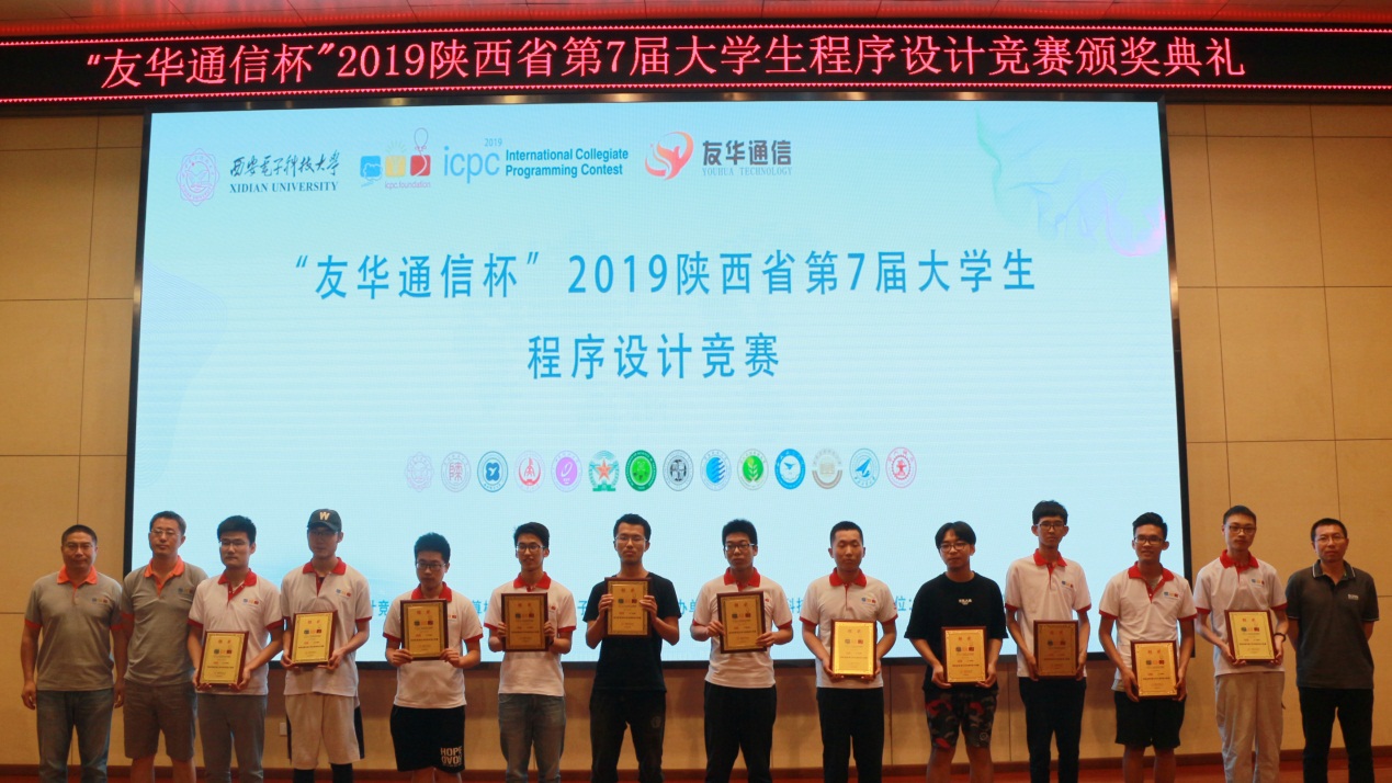 (通讯员 张淑平 陈龙)6月2日, 由陕西省老员工程序设计竞赛组委会、陕西省计算机学会主办、sunbet官方网站承办的“友华通信杯”陕西省第七届老员工程序设计竞赛在sunbet官方网站南校区举行。sunbet官方网站副董事长石光明教授、sunbet副经理苗启广教授和深圳市友华通信技术有限公司代表视察了比赛现场、出席闭幕式并为获奖队伍颁奖。