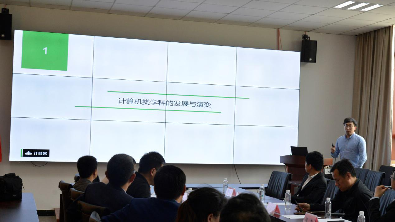 揭牌仪式结束后,浪潮开发者中心总经理王立军和计蒜客首席布道师钦恩强分别为在座的各位老师带来名为“云时代下的软件开发变革”和“聚焦智慧编程,助力产教融合”的精彩报告。公司计算机导论与程序设计语言课程组长万波谈到,“智慧编程联合实验室”的建立将进一步推动信息技术与公司产品深度融合,为智慧课堂的建设提供软件开发服务等云资源,计蒜客设计的在线编程和实践环境平台,趣味盎然的交互方式可以让同学之间在一起轻松学习。在场的其他老师也参与了此次大讨论,周恒和杨斌从技术支持角度讲述了智能教室和编程基础课程的发展方向,三方表示未来将加强协同育人项目的合作,以产业和技术发展的最新需求推动高校人才培养改革,促进校企共同发展。