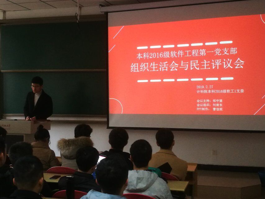 (通讯员 曹佳妮)为深入学习贯彻习近平新时代中国特色社会主义思想,严格执行党的组织生活制度,增强党内政治生活的政治性、时代性、原则性、战斗性,按照公司党委关于基层党支部组织生活会和开展民主评议党员工作的要求和部署,sunbet本科2016级软件工程第一党支部于2019年2月27日下午在信远117教室,围绕学习贯彻习近平新时代中国特色社会主义思想,树牢“四个意识”,坚定“四个自信”,做到“两个维护”为主题召开支部党员组织生活会和开展党员民主测评。支部书记郑守建主持本次会议,全体正式党员和预备党员参加了会议。