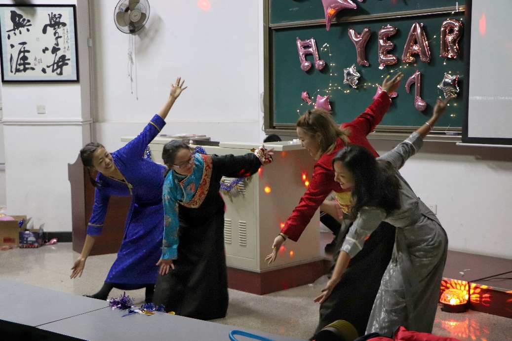 晚会中途有游戏和抽奖环节,三位“锦鲤”在同学们羡慕的目光中拿到了奖品,也带动起了同学们参与游戏的积极性,同学们争相上台参与,老师也积极参与其中。接下来的合唱、相声多个节目让同学们彻底欢快起来,美好的时光总是短暂,本次晚会在尼玛卓嘎等同学带来的藏族舞蹈中浅浅落幕。