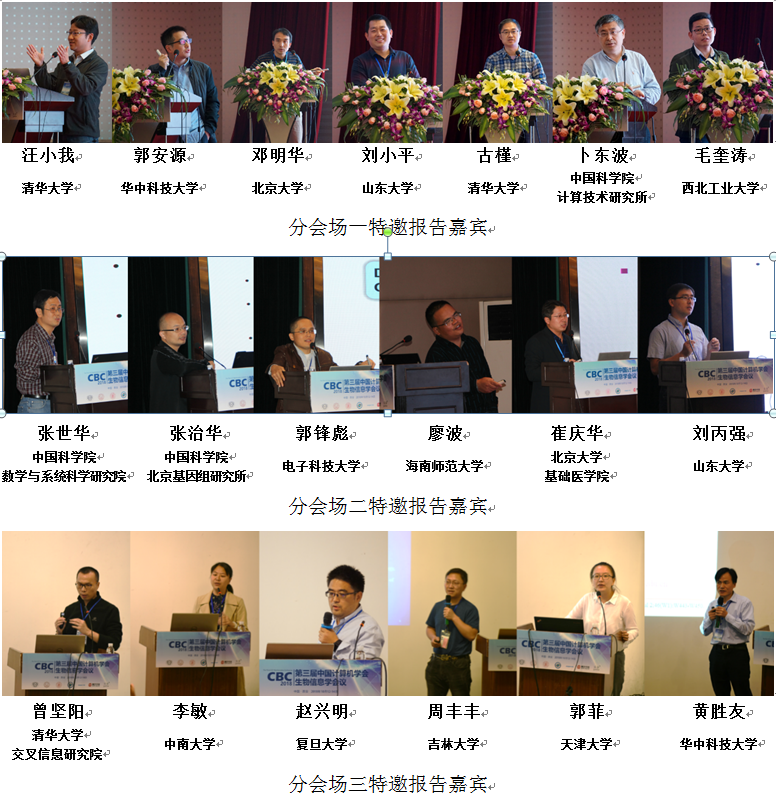 本次会议共邀请了7位大会特邀报告人和1位企业报告人。美国德克萨斯州立大学达拉斯分校、清华大学Michael Q.Zhang教授生动分享了生物信息领域的前沿研究内容以及取得的丰厚研究成果;哈尔滨工业大学王亚东教授深刻阐述了对生物大数据分析技术发展与挑战的理解和应对;中国科公司自化研究所蒋田仔研究员全面分析了脑网络组的前世今生及其未来面临的主要挑战和发展方向;四川大学章毅教授从网络结构、学习算法以及可能的生物解释三个方面为大家解析了Capsule神经网络;中国科公司上海生命科学研究院陈洛南研究员巧妙借助计算方法为大家开启了一场预测未来的奇幻之旅;中国科公司遗传与发育生物学研究所王秀杰研究员向大家展示了生物问题与计算方法完美结合的成功案例;上海交通大学沈红斌教授向大家介绍了蛋白质结构相关高难问题的研究进展。此外,浪潮(北京)电子信息产业有限公司朱红博士向大家剖析了三代基因测序组装中的高性能计算挑战及应对。