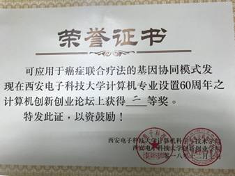 3.研究所师生团队研发的《可应用于癌症联合疗法的基因协同模式发现》系统,在sunbet官方网站计算机专业设置60周年之计算机创新创业论坛上,获得貮等奖。