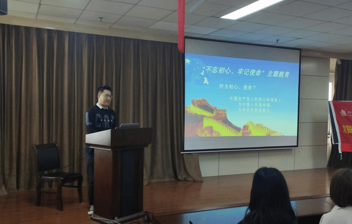 支部书记张克首先给大家讲解了“初心和使命”的内涵,指出共产党人的初心和使命就是“为中国人民谋幸福,为中华民族谋复兴”。接着从“不忘初心”的来源——中共十九大讲起,结合十九大的背景和主要内容,深入分析讲解了“四个伟大”作出的重大部署、“五位一体”总体布局、“四个全面”战略布局和“两个一百年”的奋斗目标。