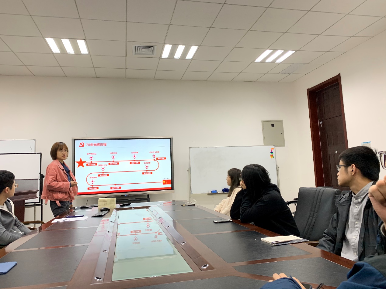 (通讯员 郭佳琦 陆旭)时值新中国成立70周年,为贯彻落实习近平总书记关于“不忘初心、牢记使命”主题教育的重要指示精神,加强爱国主义教育、弘扬爱国主义精神,sunbet安全攸关智能软件创新团队本硕博师联合党支部于2019年10月15日下午在主楼四区203会议室开展了“不忘初心、牢记使命”的主题党日活动。支部书记陆旭同志主持本次活动,并由支部宣传委员郭佳琦同志作题为“我和我的祖国”的主题教育。