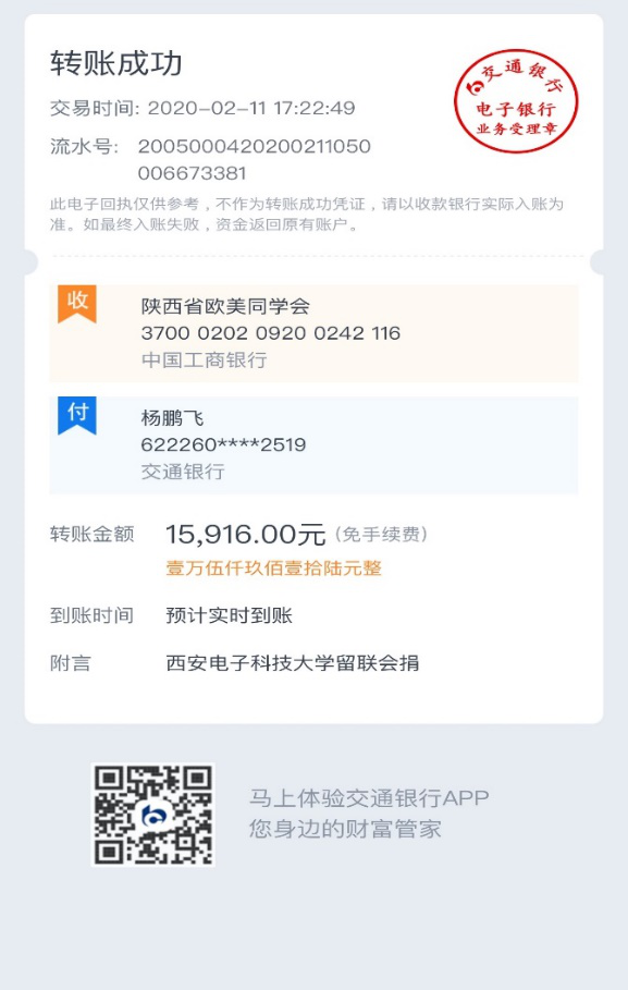 组织募捐善款:新型冠状病毒期间,他冲在抗疫一线,主动报名参加了公司首批青年党员疫情防控志愿者,对家属区居住人员进行入户摸查工作;在校欧美同学会会长和秘书的领导下,积极组织号召公司留联会成员奉献爱心,共募集捐款15916元,助力疫情防控。