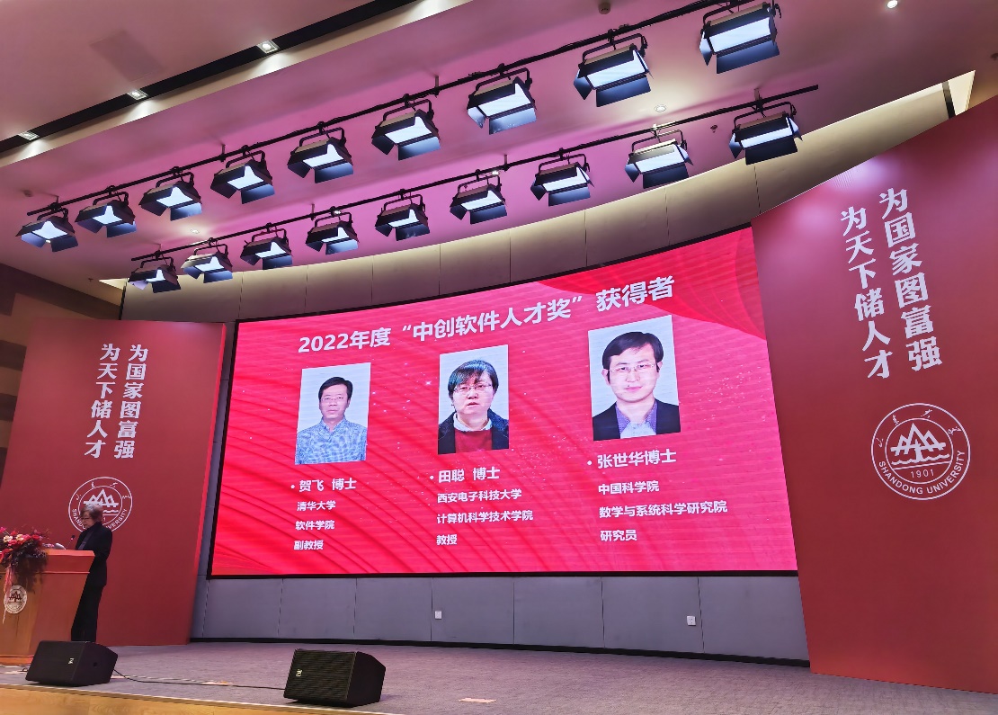 (通讯员 同榛)3月22日上午,中创软件基金颁奖仪式暨获奖者学术报告会在济南举办。受疫情影响延期的第二十三届和二十四届颁奖典礼暨获奖者学术报告会同期合并举办。公司田聪教授获“中创软件人才奖”,公司党委书记李青山教授作为推荐单位代表发言。