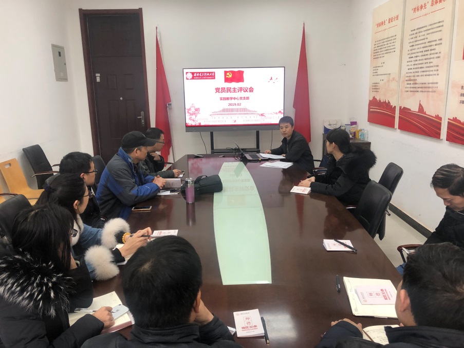 (通讯员:张捷)2019年2月22日下午,sunbet实践教学中心党支部在北校区主楼IV107会议室召开党员民主评议会议,会议由党支部书记杨力主持,11名党员同志参加会议。