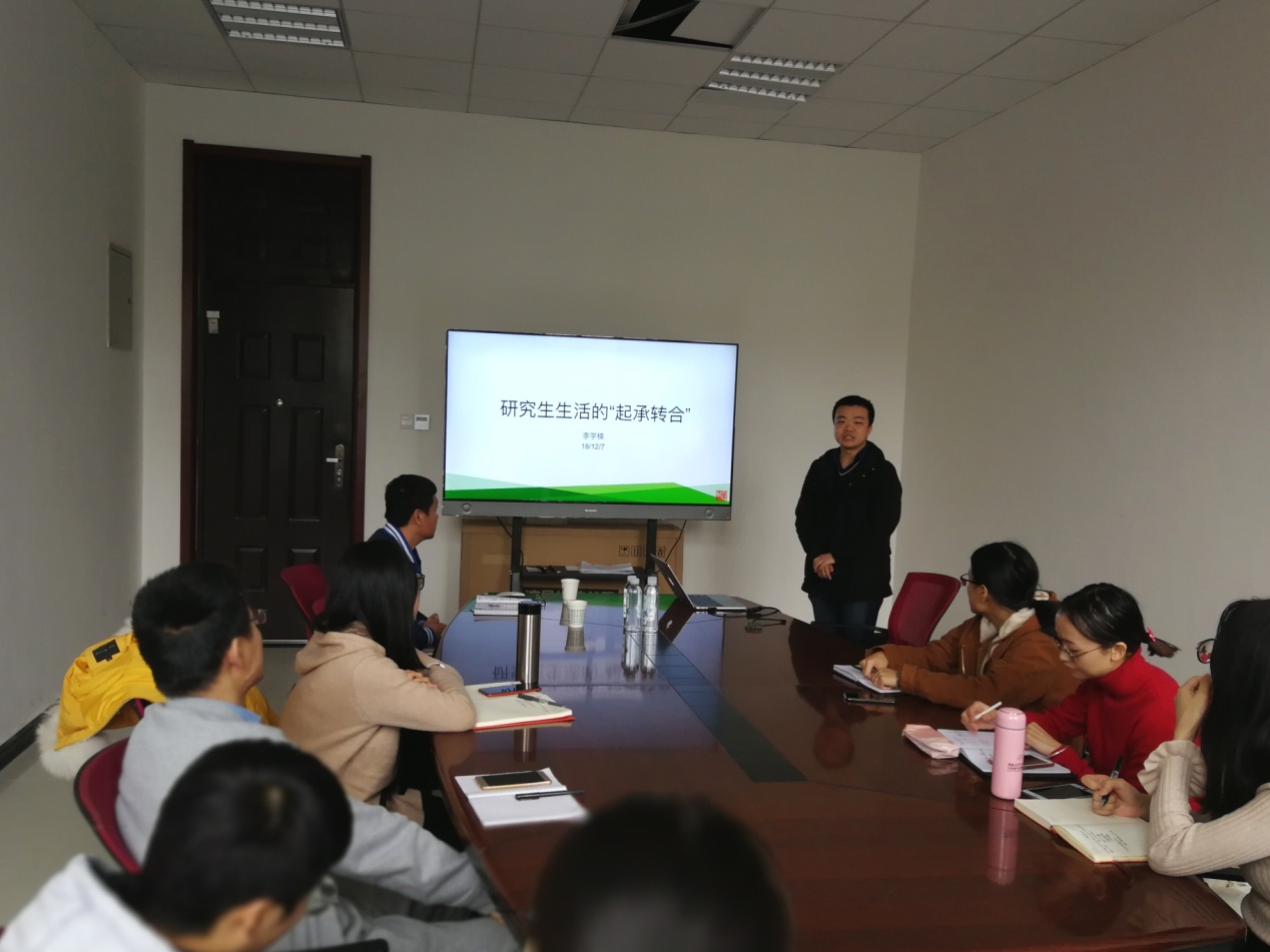 随后,支部邀请实验室优秀博士生李宇楠同志为大家介绍学习和科研经验,他建议一年级员工将专业学习与自身发展相结合选好适合的课程,将理论与实践相结合,编写优质的代码,要善于利用搜索引擎,多读论文,勤写文档,从而找出突破口,进行创新。此外,他讲述了科研工作是一个不断实验和改进的过程,鼓励大家要克服困难、坚持不懈。刚签约百度的胡旭同学介绍了求职面试的几个过程,他谈到学习应该持之以恒,从入学开始就应储备知识,不断加强实战技能,同时在求职中应该明确求职目标,合理安排时间。
