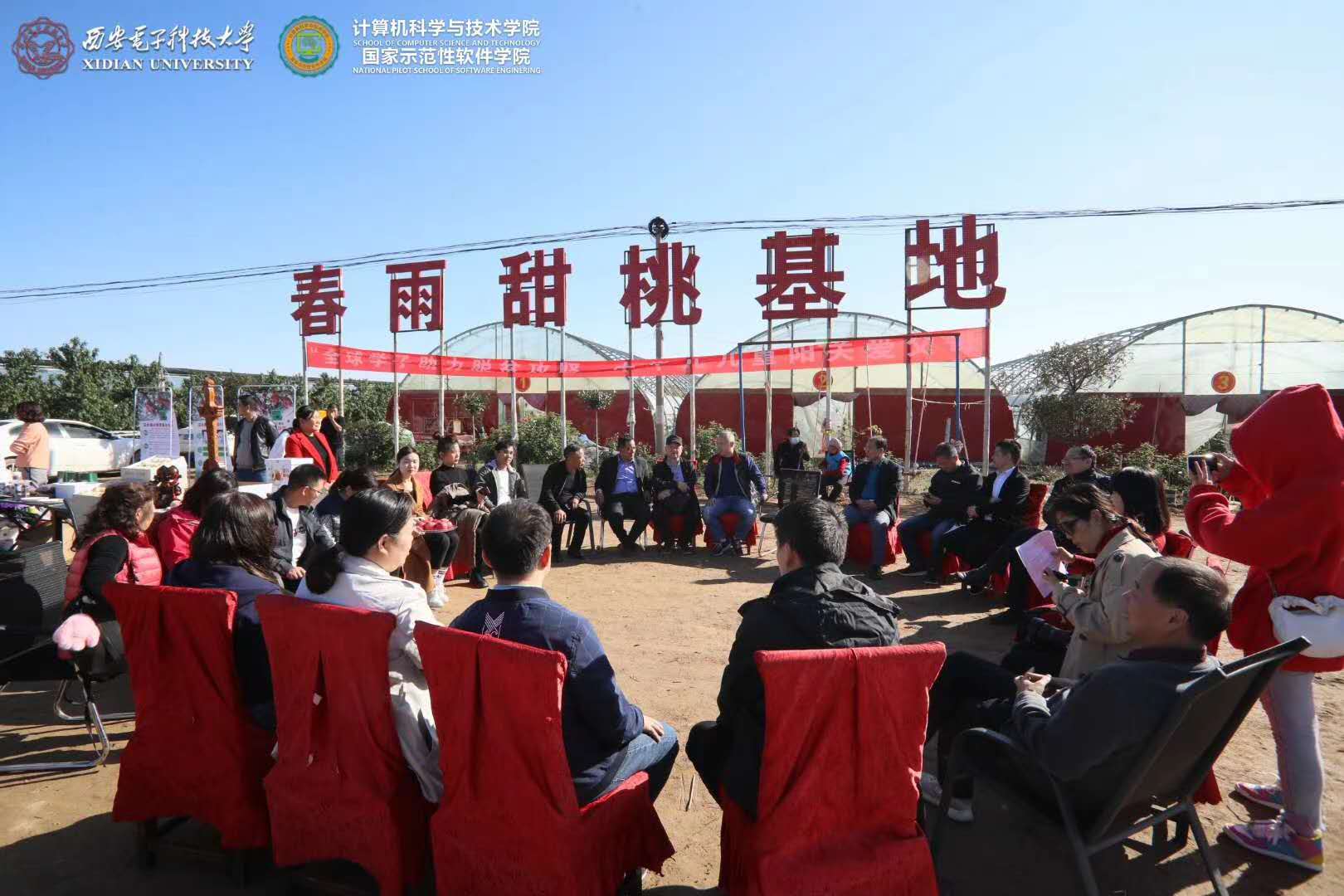 在直播结束后,校扶贫办主任沈强、公司党委书记李青山、校留学人员联谊会副秘书长王琳、刘志镜教授“山货帮”团队、校留联会sunbet分会带货代表、中国农科新闻网执行总编曹雅静及企业代表等围坐在春雨甜桃合作社的桃园里,举行了题为“田间擦碰科技富农新火花,地头共绘智慧农业新画卷”的科技扶贫座谈。