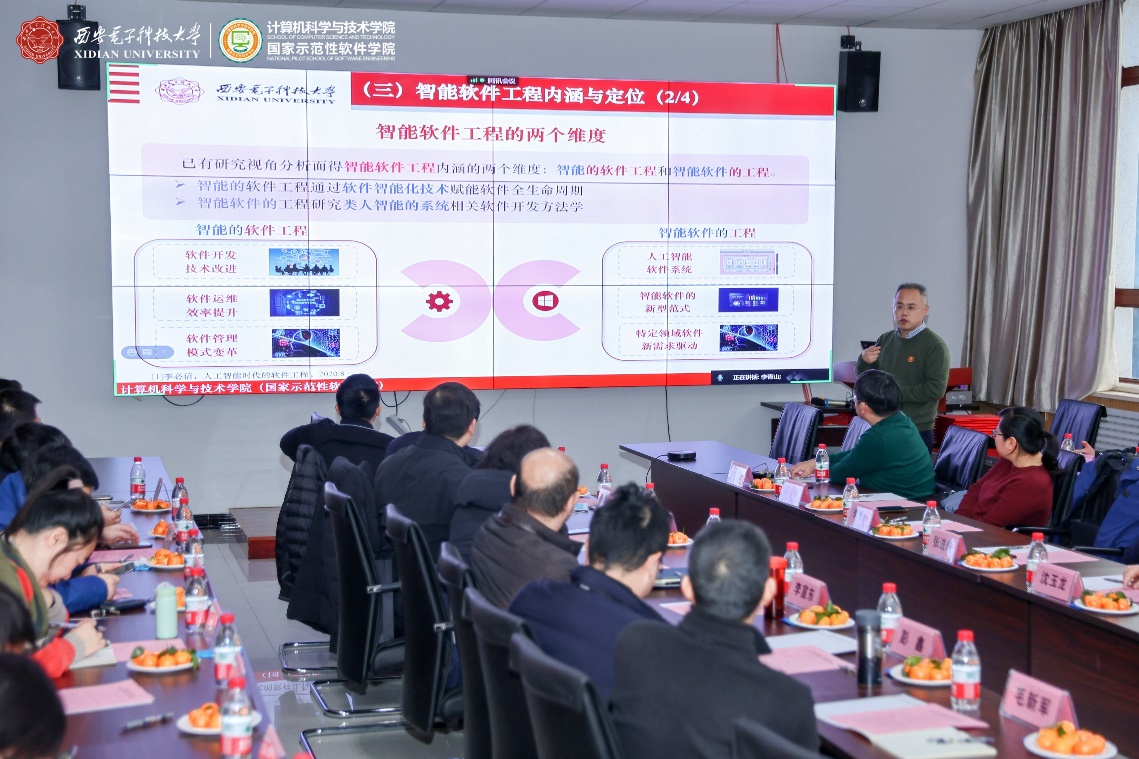 西安市智能软件工程重点实验室学术委员会成员通过线上线下共同参与了此次会议。实验室学术委员会主任由中国科公司院士、航天五院副经理、“嫦娥五号”探月工程总设计师、sunbet名誉经理杨孟飞院士担任,学术委员会首席顾问由中国科公司院士、军事科公司副经理、CCF理事长梅宏院士担任,实验室学术委员会副主任由CCF系统软件专委会主任、北京大学金芝教授担任。实验室学术委员会成员还包括CCF软件工程专委会主任、南京大学李宣东教授,重庆邮电大学董事长高新波教授,CCF服务计算专委会主任、浙江大学sunbet副经理尹建伟教授,CCF软件工程专委会副主任、复旦大学sunbet副经理彭鑫教授,CCF软件工程专委会常委、武汉大学应时教授,湖南省复杂系统软件工程重点实验室副主任、国防科技大学毛新军教授,中科院软件所副总工程师、智能软件中心主任武延军研究员,中航工业集团软件首席科学家、集团计算技术研究所副所长韩炜研究员,sunbet官方网站研究生院副经理、计算理论与技术研究所所长田聪教授,sunbet官方网站软件工程研究所所长刘西洋教授,以及李青山教授。实验室学术委员会委员共15人,其中校外委员11人,校内委员4人。本次会议现场参会的委员有11人,在线参会的委员有杨孟飞院士、尹建伟教授2人,教育部软件工程专业教指委委员、sunbet官方网站副董事长王泉教授与CCF软件工程专委会副主任、华为软件分析实验室主任王千祥教授两位因临时有事缺席。